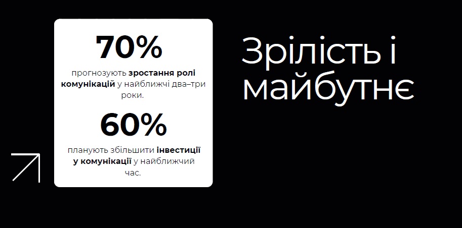 Прогноз ринку: 70% респондентів прогнозують зростання ролі комунікацій у найближчі два-три роки. 60% планують збільшити інвестиції.