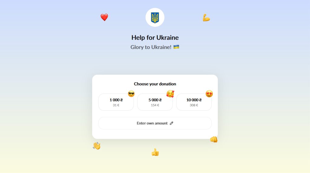 На сторінці доступні три варіанти суми підтримки, а також можливість ввести власну суму. Після її вибору користувача переадресовує на сторінку оплати, де треба ввести реквізити платіжної картки будь-якого банку або скористатися Google Pay для оплати. Процедура максимально проста та зрозуміла.