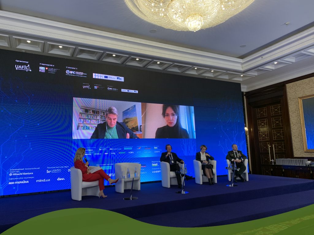 Учасники панельної дискусії “Future of regulation / future of digital economy” наголосили на потужному впливі ШІ на цифрову економіку світу. Співрозмовники ділились думками про шлях України у використанні ШІ, кроки нашої держави до регулювання технологій штучного інтелекту та важливість цифровізації державних послуг.