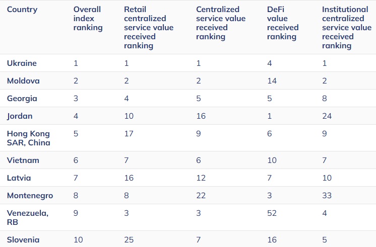Тож, враховуючи коригування на чисельність населення, лідерами є країни Східної Європи, зокрема Україна, Молдова та Грузія. Такі фактори, як економічна невизначеність, недовіра до традиційних фінансових установ та висока технічна грамотність стимулюють впровадження криптоактивів у Східній Європі. Криптовалюту тут все частіше розглядають як альтернативу для збереження заощаджень та здійснення транскордонних транзакцій.