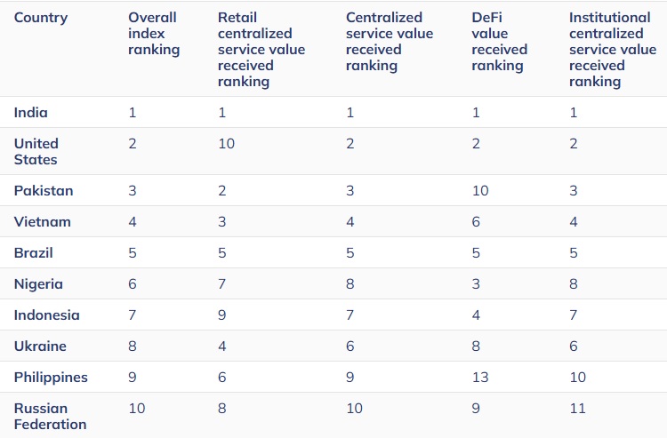 Топ-10 країн за рівнем прийняття криптовалют