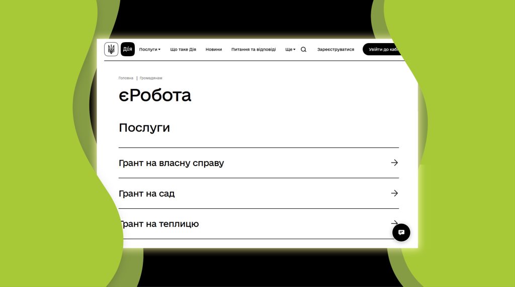 1 липня стартувала програма єРобота, в межах якої українці можуть отримати грант до 250 тисяч гривень на створення або розвиток власної справи в одному з чотирьох напрямків. За рік уряд планує видати 20 тисяч таких грантів. Кошти надаватимуться не готівкою, а на окремий банківський рахунок заявника.