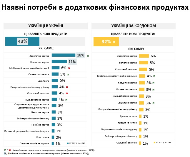 Опитані, що наразі знаходяться в Україні, мають більші потреби в додаткових банківських продуктах порівняно з тими, хто наразі за кордоном: